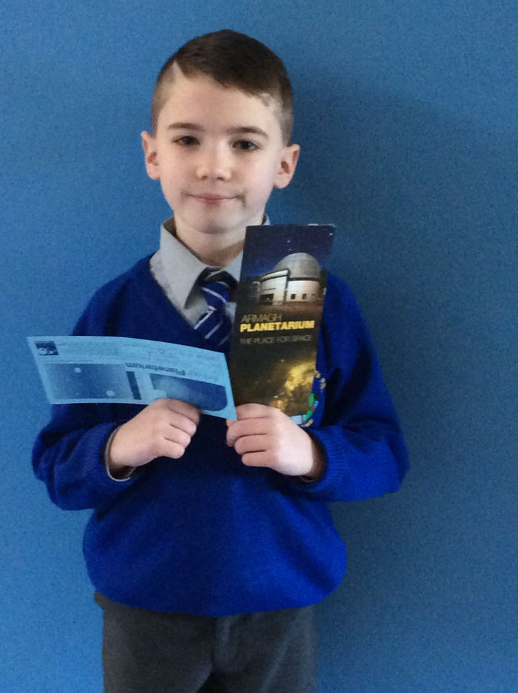 Congratulations to Philly Hughes, P.5, who was awarded a family ticket to visit the Armagh Planetarium for his wonderful Christmas card design. He entered the competition before the Christmas holidays, so it was a lovely surprise for him when he returned to school today! Well done, Philly!